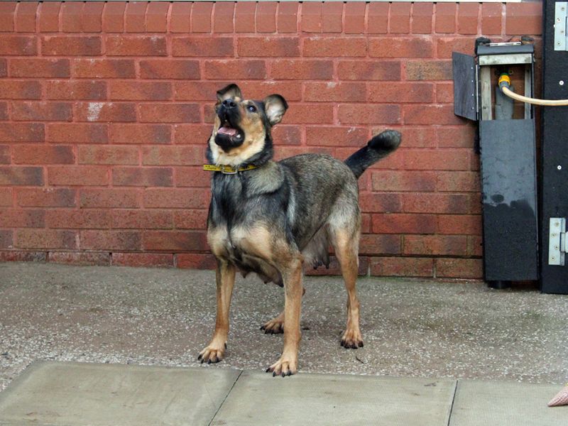 Beautiful Hope arrived via the dog warden and we very quickly realised that she was heavily pregnant! Seven very chunky babies later, she's ready to find a new home of her own. There isn't anyone at the centre that hasn't fallen in love with this beauty, she is outrageously affectionate with people and loves to be cuddled, and she's had no problem with any of us being around her babies, she's been proud to show them off. Hope has had quite a few checks from our vet throughout her pregnancy and subsequent motherhood, and she's been excellent for all of them. We have tried to keep Hope socialised but her reactions can be mixed when meeting other dogs. Some she will walk well with and others she doesn't want approaching her. She may settle down in the future once her pups have gone but for now she will need to be the only dog at home, but if she has a walking pal or two that she finds agreeable, that would be nice for her. Hope really is the most scrumptiously loving and playful girl, and we're all very jealous of the family that gets to take her home!