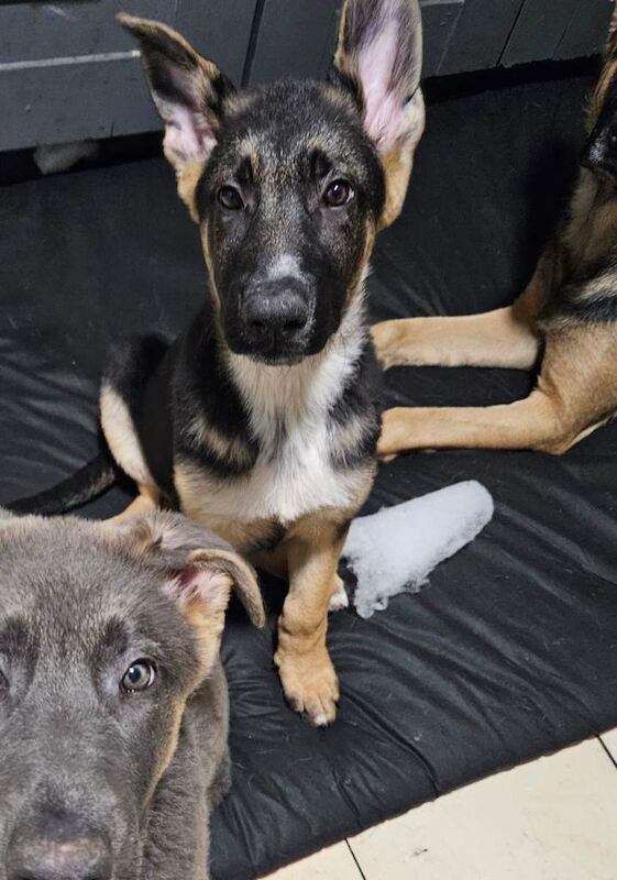 Lovely female German Shepherd puppy last of our litter left available and ready for her new home. She has had both vaccinations, is fully wormed and flead, and is currently using puppy pads. She already sits on command and has a brilliant, eager-to-learn temperament.Healthy, confident, and well-socialised.