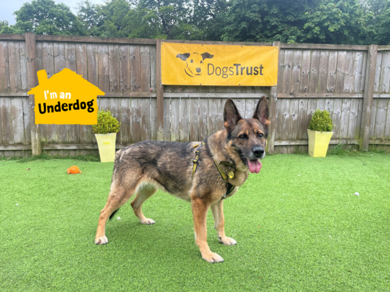 Gina is a 7-year-old German Shephard. Gina is a sweet girl who enjoys spending time with the people she knows best. She can live with children aged 10 and above and although she is happy to say hello to other calm and polite dogs when out on walks, she would like to be the only pet in the home. Gina is a gentle giant who is always happy to see her people. She is a shy girl who can take time to build up trusting bonds with new people. Once you have a strong friendship she loves to be in your company and does enjoy a gentle fuss. Gina is not used to living in a home environment and so is looking for new owners who are happy to help her with some basic housetraining and ease her into home life. Gina has not had much experience with the outside world and can become worried and overwhelmed by unknown people or places and in busy environments. She is looking for new owners who have had previous experience with nervous dogs and who can build up her confidence and help her flourish into the amazing girl that she is. Gina does enjoy getting out on walks where she can have a potter and a good sniff around. Gina would love to have a good-sized garden where she can explore and play fetch with her favourite squeaky toys.